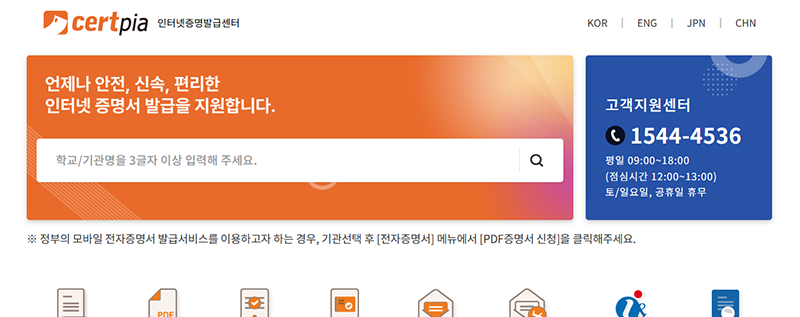 • ① www.certpia.com 사이트에서 해당하는 학교명을 검색또는 하단리스트에서 선택