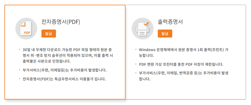 • ④발급구분중 전자증명서(pdf) 를 선택 발급 클릭